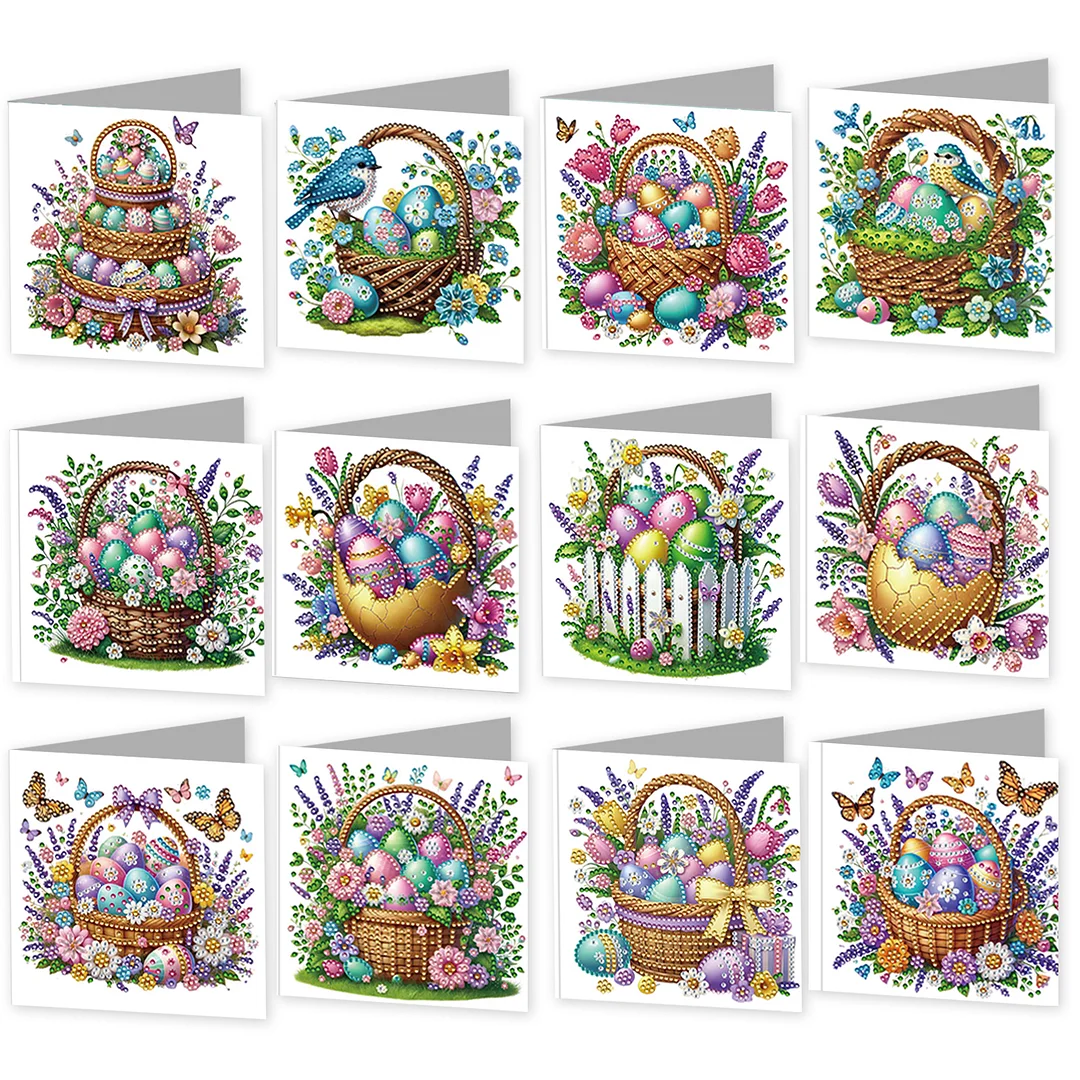 12pcs Diamond Painting Easter Egg Basket Greeting Card Kit for Adults Gifts