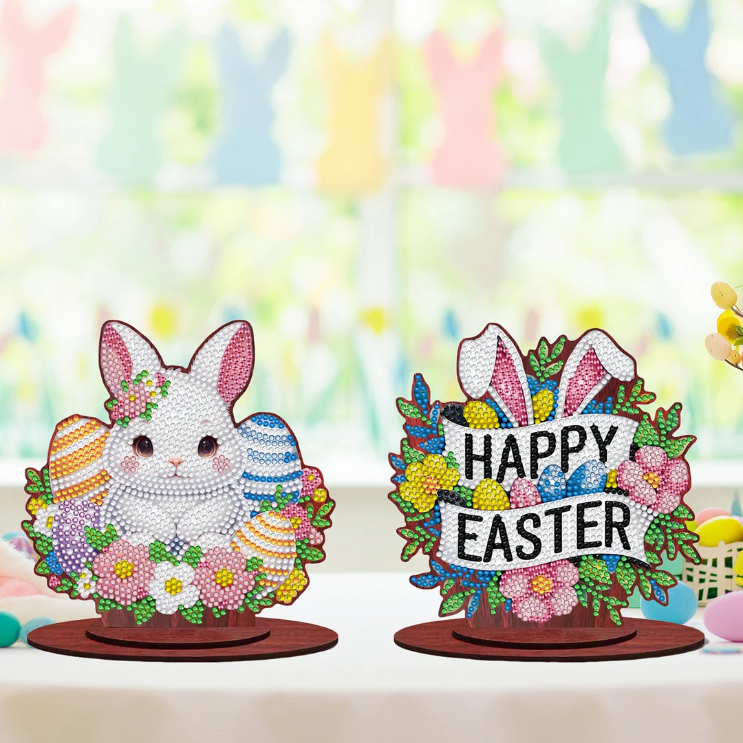 2Pcs Diamond Painting Easter Bunny Gnome Sign Tabletop Ornaments Kit