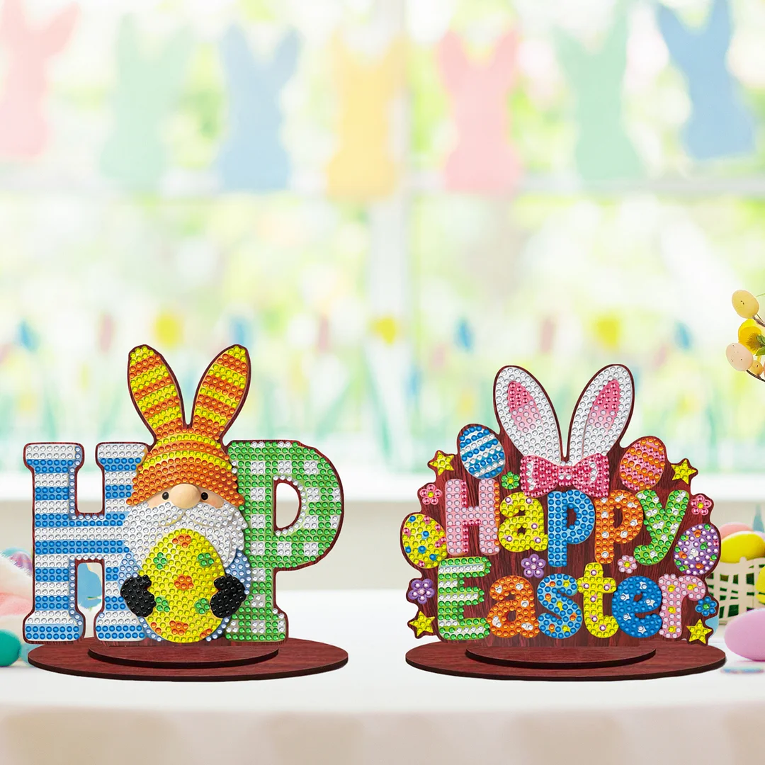 2Pcs Diamond Painting Happy Easter Wreath Sign Tabletop Ornaments Kit