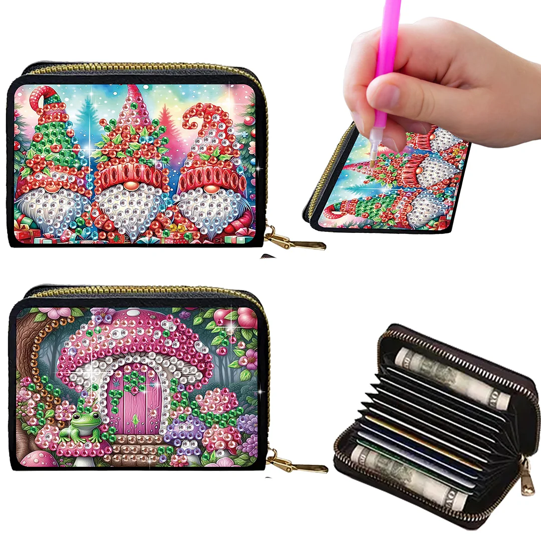 2Pcs Diamond Painting Tree House Gnome Fashion Card Holder Coin Purse