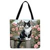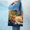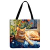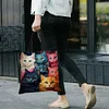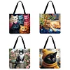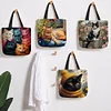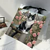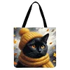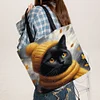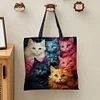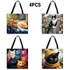 (US Warehouse)4Pcs Diamond Painting Cat Linen Tote Bag Handbag Large Capacity Women Shopping Shoulder Bags