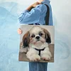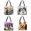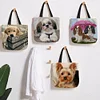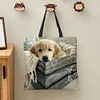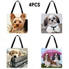 (US Warehouse)4Pcs Diamond Painting Dog Linen Tote Bag Handbag Large Capacity Women Shopping Shoulder Bags