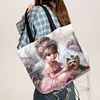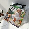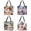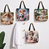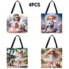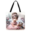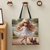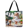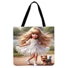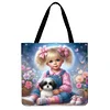 (US Warehouse)4Pcs Diamond Painting Girl and Dog Linen Tote Bag Handbag Large Women Shopping Shoulder Bags