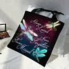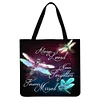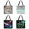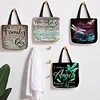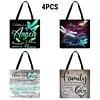 (US Warehouse)4Pcs Diamond Painting Quotes Linen Tote Bag Handbag Large Capacity Women Shopping Shoulder Bags