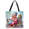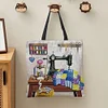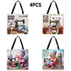 (US Warehouse)4Pcs Diamond Painting Sewing Linen Tote Bag Handbag Large Capacity Women Shopping Shoulder Bags