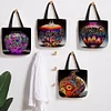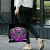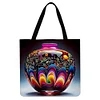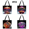 (US Warehouse)4Pcs Diamond Painting Vase Linen Tote Bag Handbag Large Capacity Women Shopping Shoulder Bags