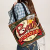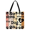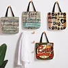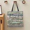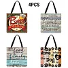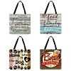 (US Warehouse)4Pcs Diamond Painting Words Linen Tote Bag Handbag Large Capacity Women Shopping Shoulder Bags