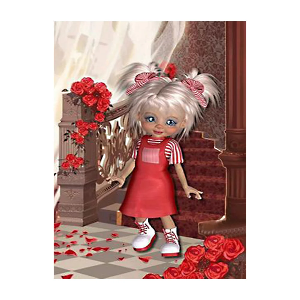5D Diamond Painting DIY Cartoon Girl Full Round Drill Mosaic Picture Wall Art Rhinestone Crafts Home Decoration Gift