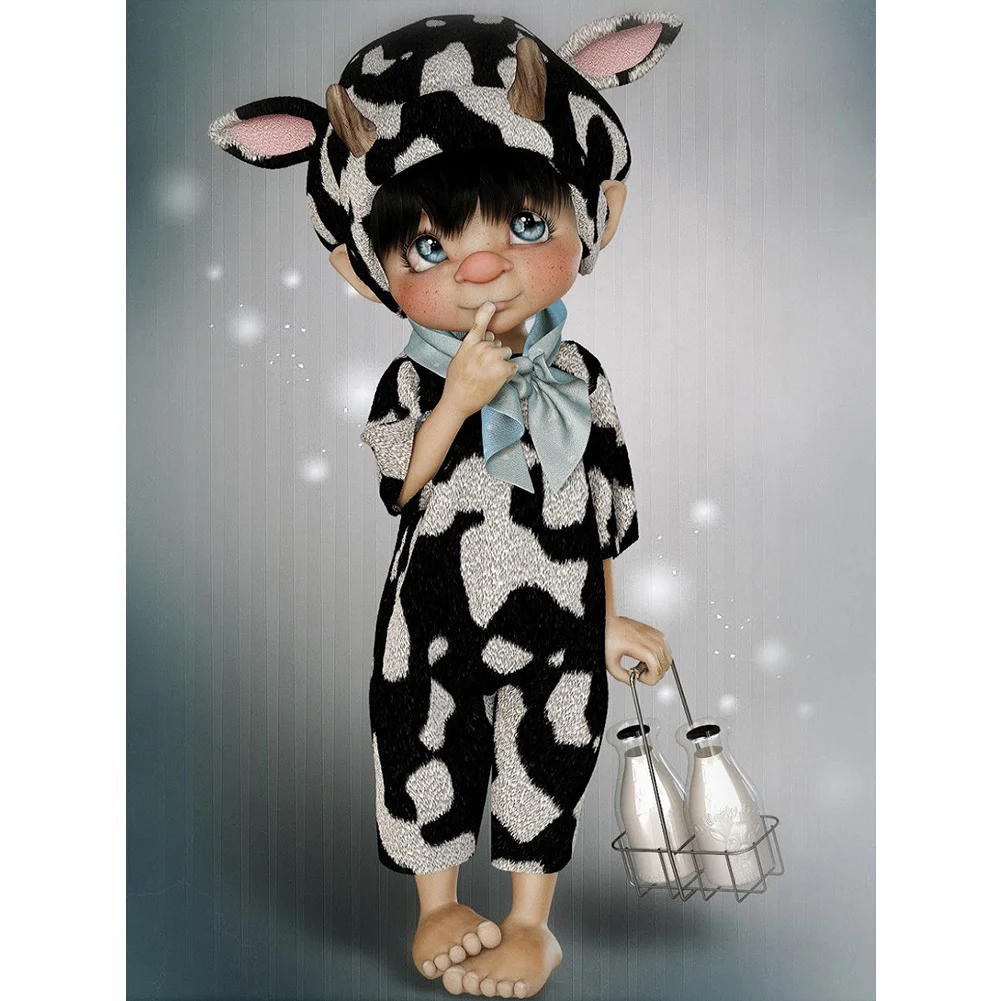 5D DIY Full Round Drill Diamond Painting Cartoon Doll Mosaic Kit Rhinestone Drawing Picture Home Decoration Art Craft 30x40cm