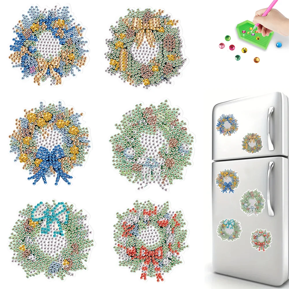 6Pcs Christmas Diamond Art Fridge Magnet Diamond Art Magnets Decals Diamond Painting Fridge Magnet for Car Mailbox Decor