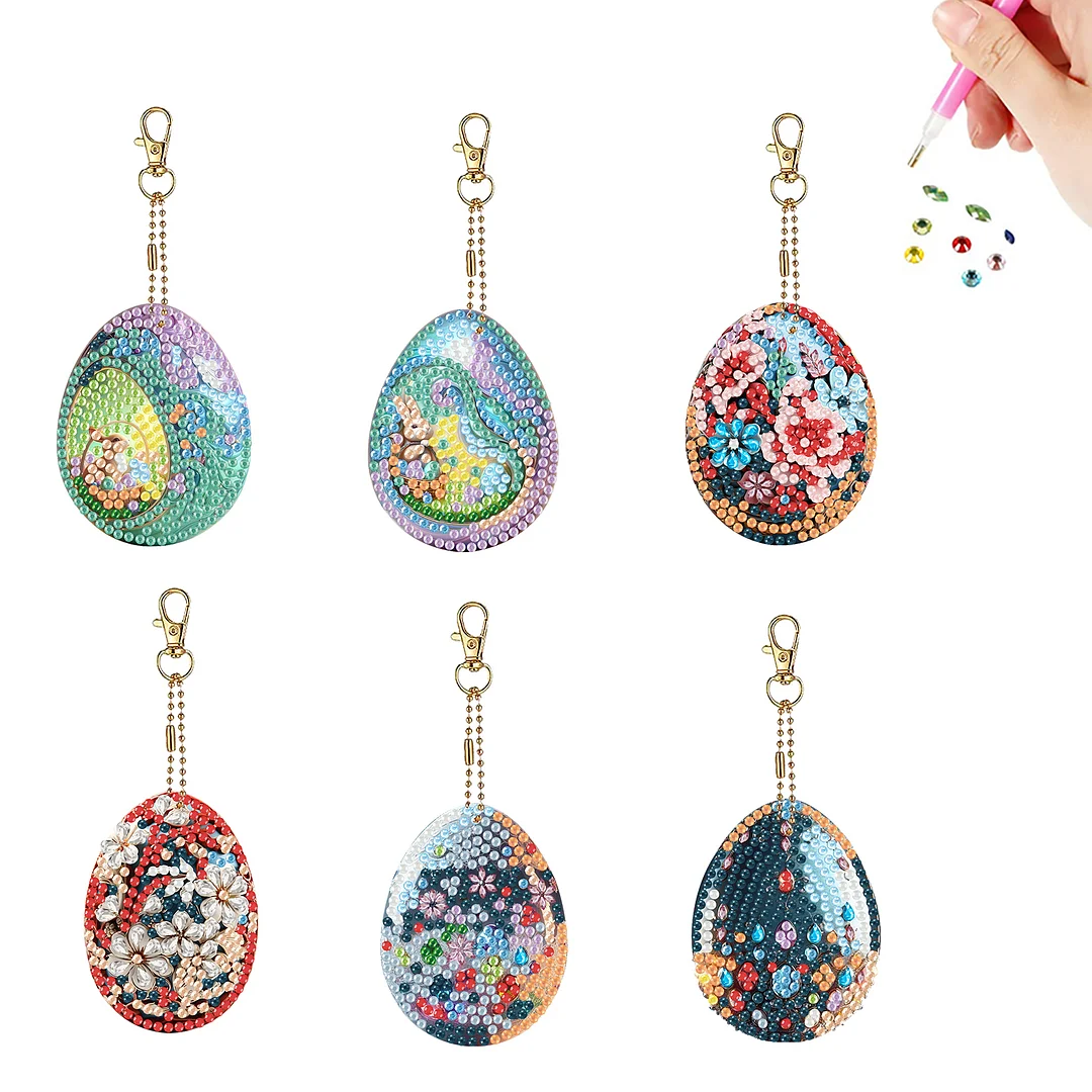 6pcs Diamond Painting Double Sided Easter Keychain for Adults Bag Purse