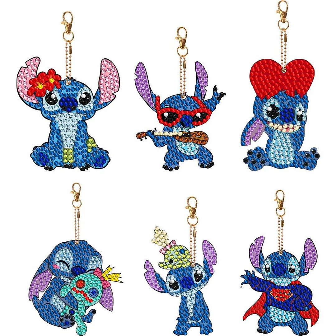 4. Stich Character Theme: These diamond painting keychains feature adorable Stich character designs, perfect for adding a playful touch to your accessories. Attach them to your keys or bags to bring a whimsical charm to your everyday life.