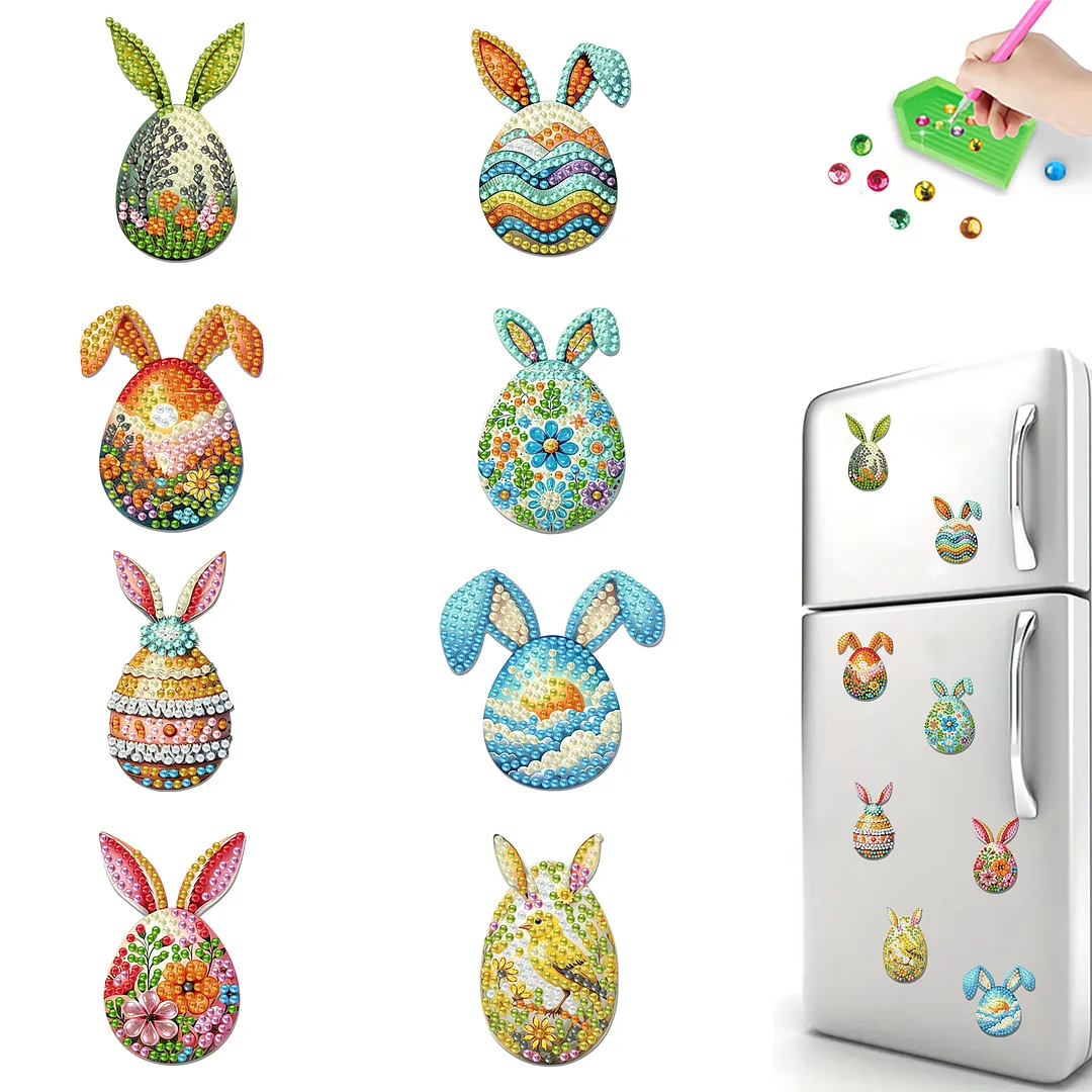 8pcs Diamond Painting Acrylic Easter Bunny Eggs Magnet Refrigerator Sticker Craft for Adults Home Decors