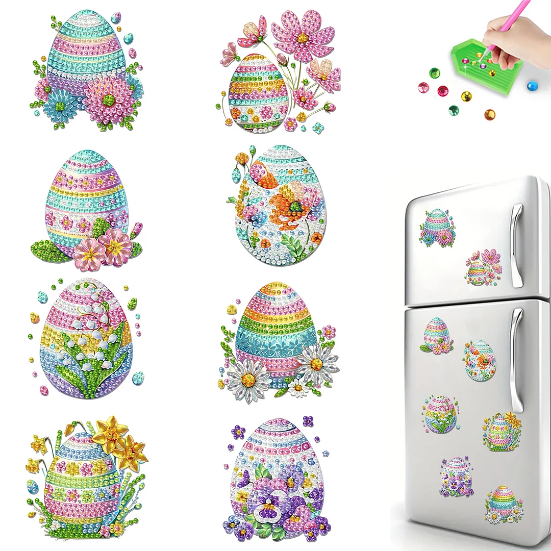 8pcs Diamond Painting Acrylic Easter Floral Eggs Fridge Magnet Refrigerator Sticker Craft for Adults Home Decors