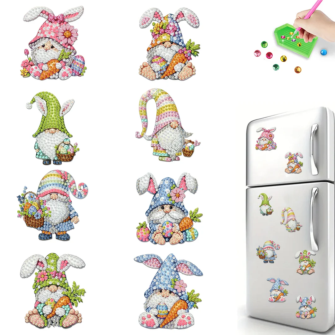 8pcs Diamond Painting Acrylic Easter Goblin Bunny Fridge Magnet Refrigerator Sticker Craft for Adults Home Decors