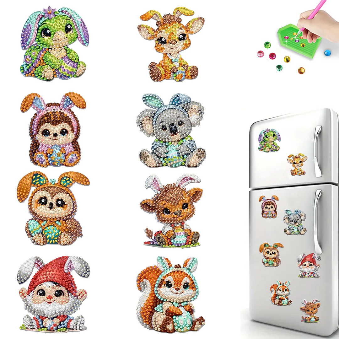 8pcs Diamond Painting Acrylic Easter Woodland Critters Magnet Refrigerator Sticker Craft for Adults Home Decors