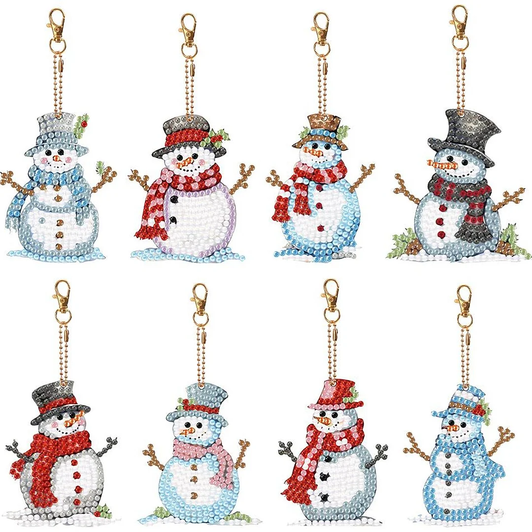 8PCS Full Drill Keyring Double Sided Special Shape Diamond Art Keyring Christmas Snowman Diamond Painting Keychain Rhinestone Painting Keychain Pendant for Beginners Birthday Crafting Home Party Decor