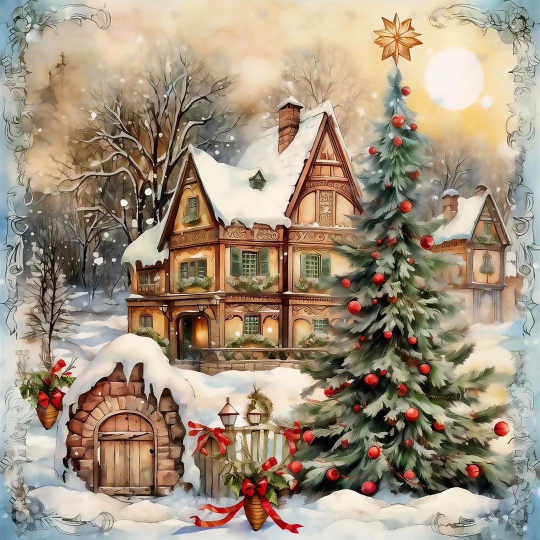 Diamond Painting-5D Full Round Drill Christmas House