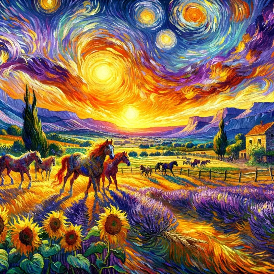 Diamond Painting-5D Full Round Drill Horse in the Sun(40x40cm)