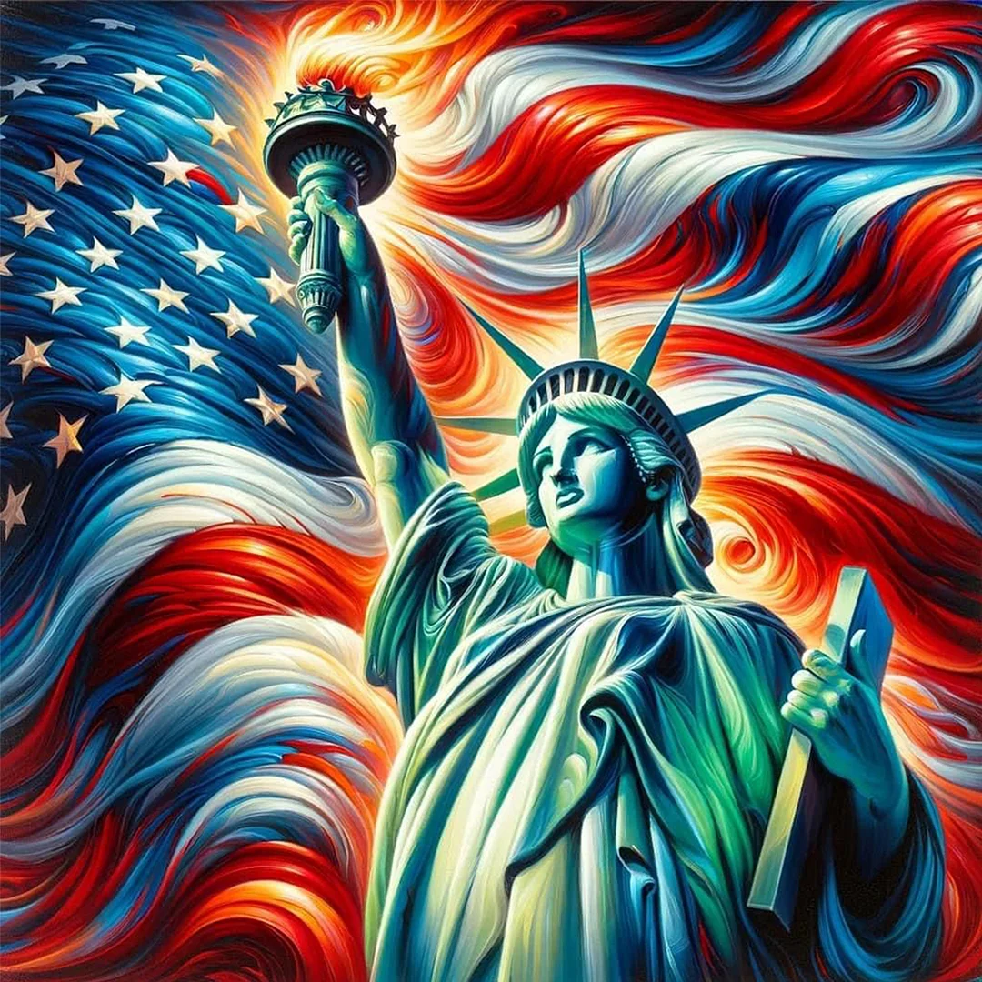 Diamond Painting -5D Full Round Drill Independence Day and Statue of Liberty(40x40cm)