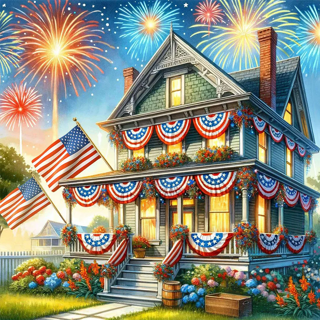 Diamond Painting -5D Full Round Drill Independence Day Cottage(40x40cm)