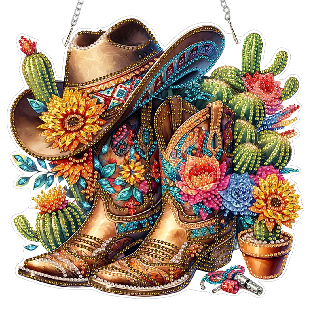 Diamond Painting Acrylic Cowboy Cactus Pendant for Home Wall Decor