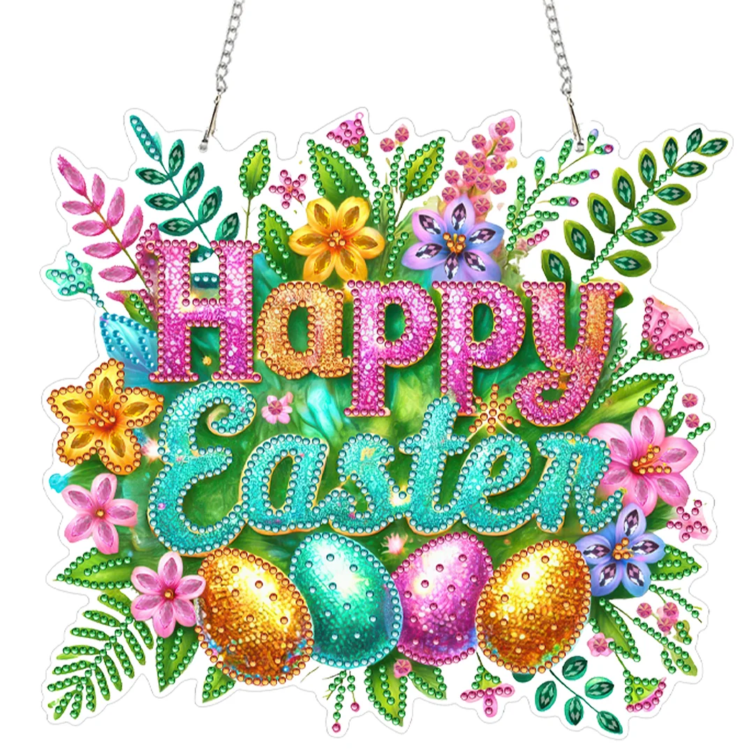 Diamond Painting Acrylic Double Sided Happy Easter Wreath Window Pendants for Home Garden Wall Decoration