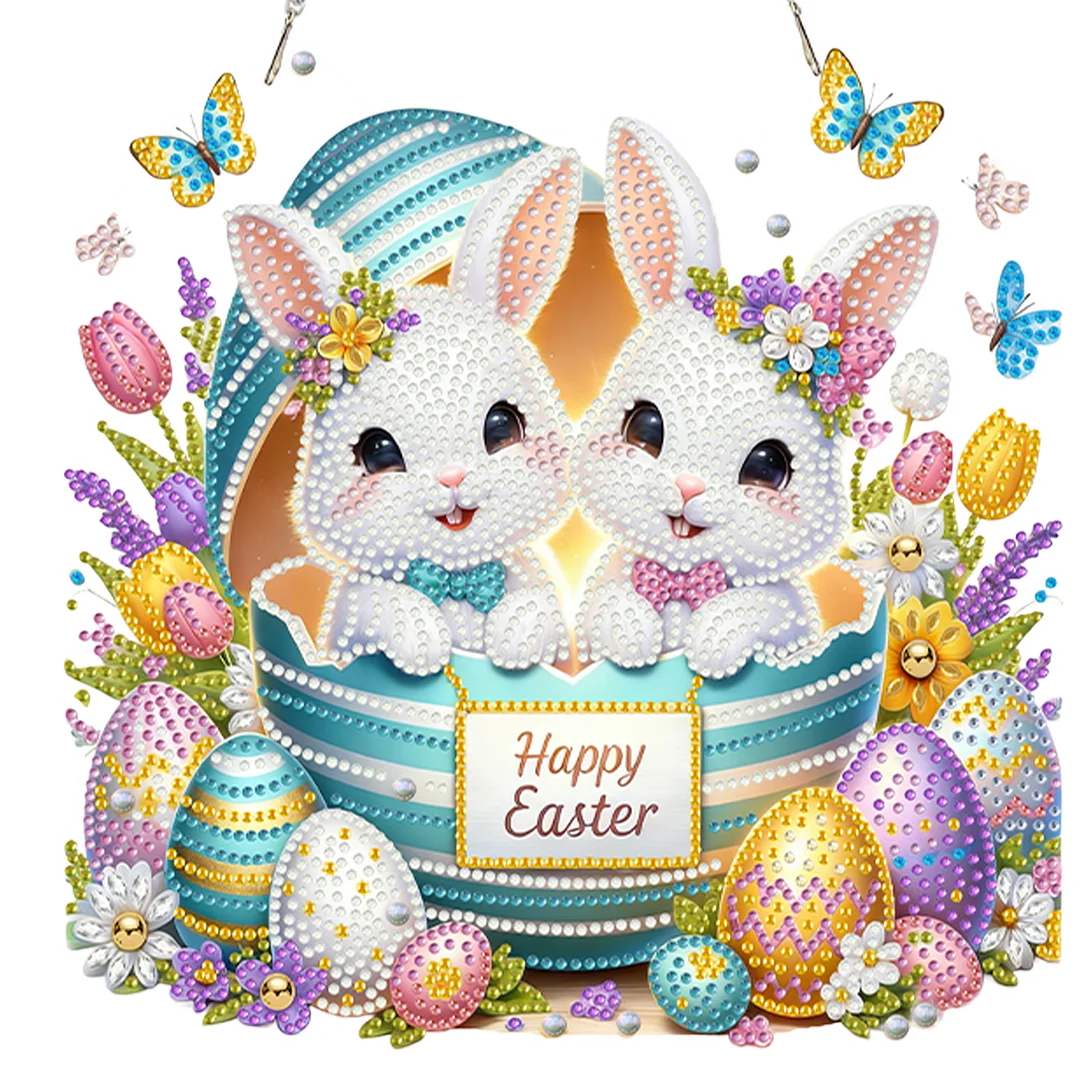 Diamond Painting Acrylic Easter Bunny Window Pendants for Home Garden Wall Decoration