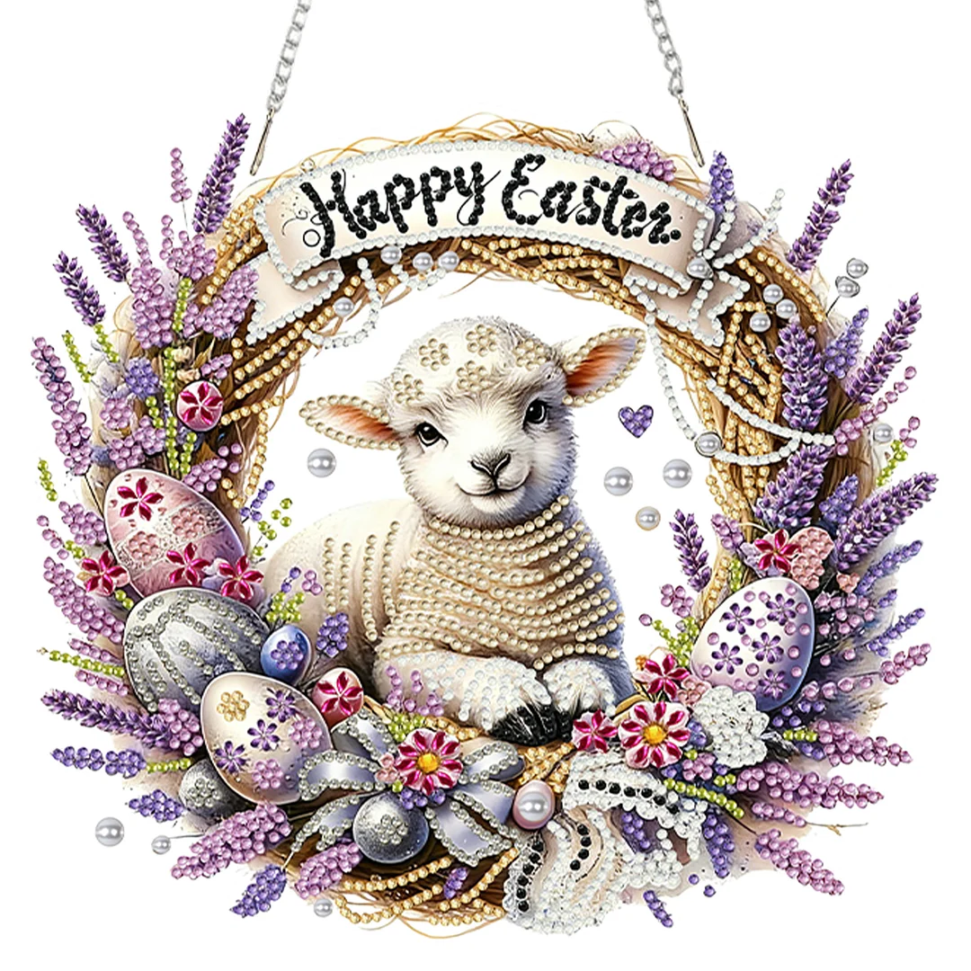 Diamond Painting Acrylic Easter Sheep Window Pendants for Home Garden Wall Decoration