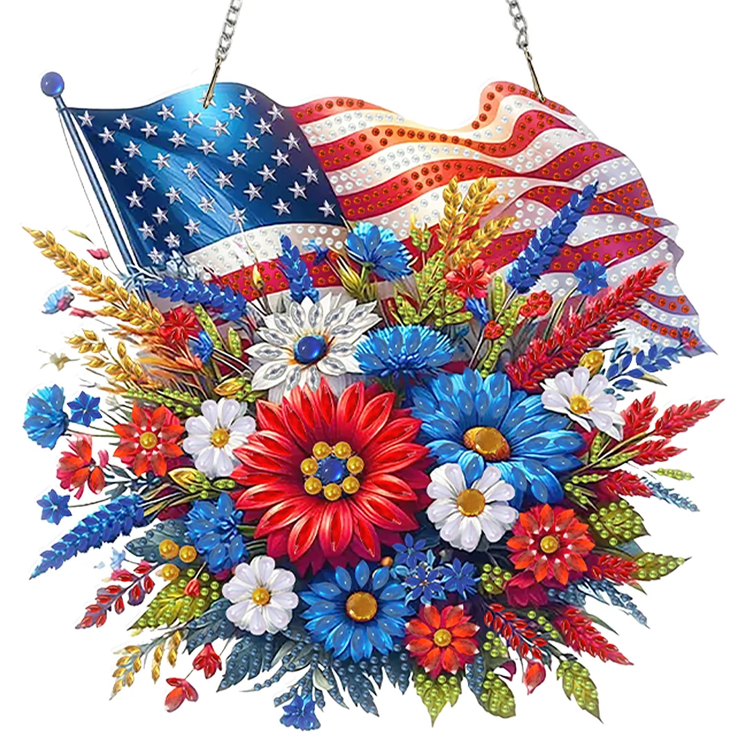Diamond Painting Acrylic Single-sided National Flag and Bouquet Pendant