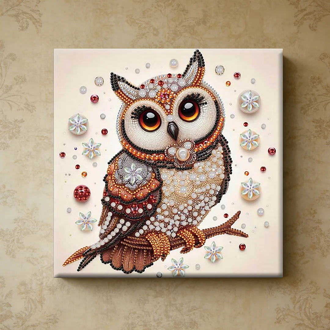 Diamond Painting-DIY Crystal Rhinestone Brown Owl with Frame(25x25cm)