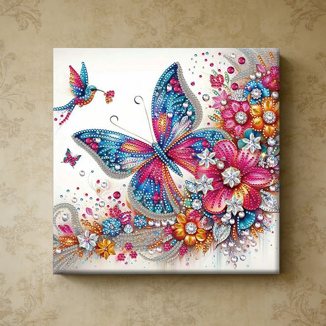 Diamond Painting-DIY Crystal Rhinestone Butterflies and Flowers with Frame(25x25cm)