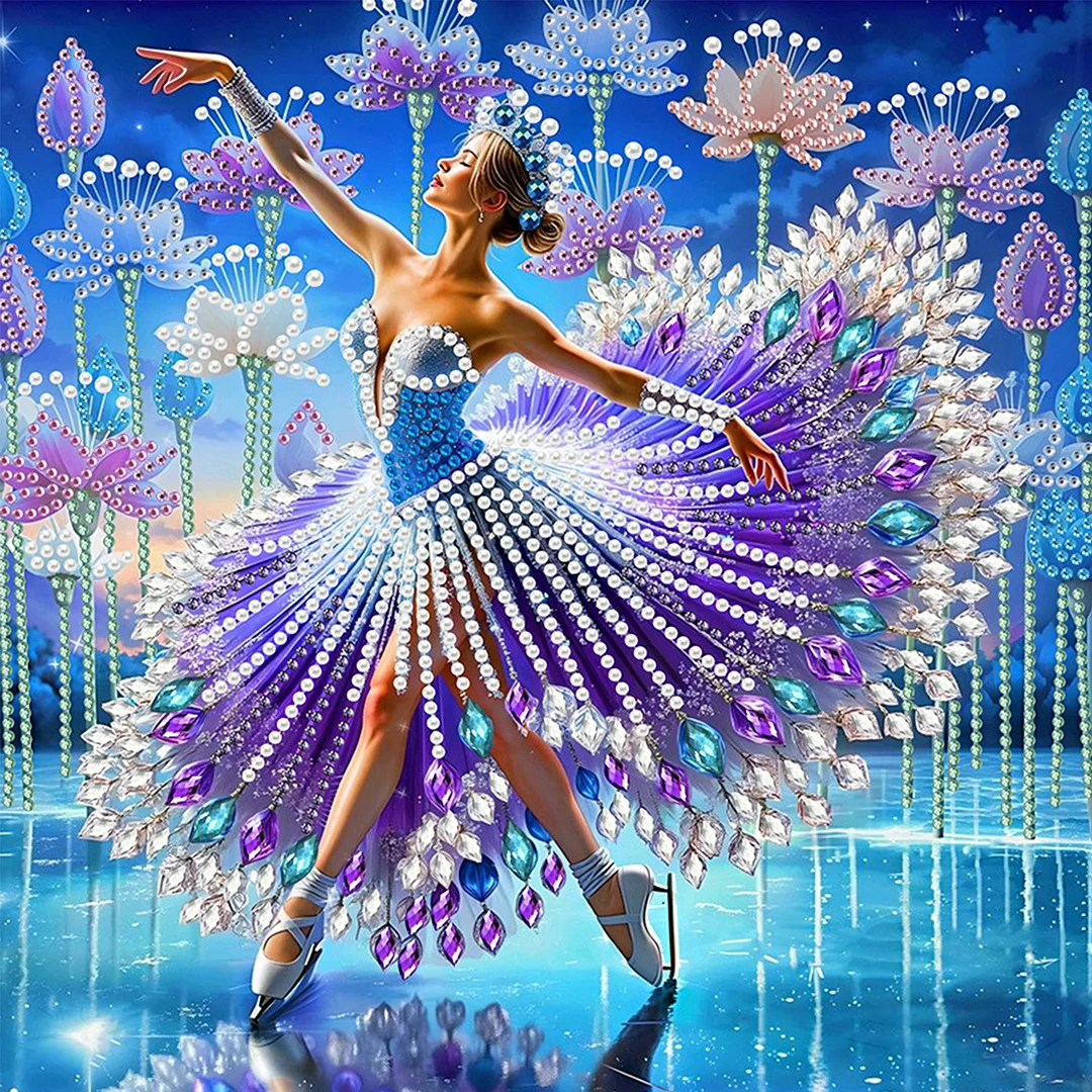 Diamond Painting-DIY Sparkling Special Shaped Pearl Drill Purple Dancing Girl(30x30cm)