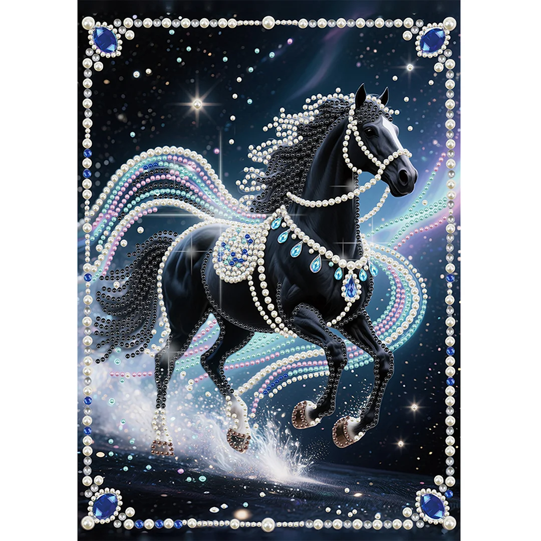 Diamond Painting-DIY Sparkling Special Shaped Pearl Drill Dark Horse(30x40cm)