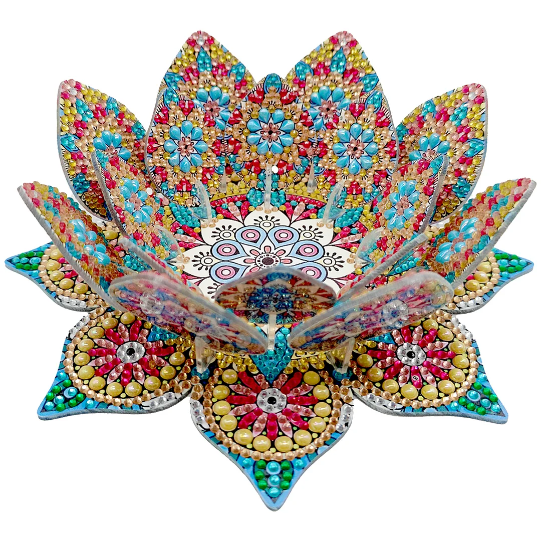 Diamond Painting Gold Blue Lotus Candlestick Diamond Art Desk Ornaments for Adults Bedroom Decor
