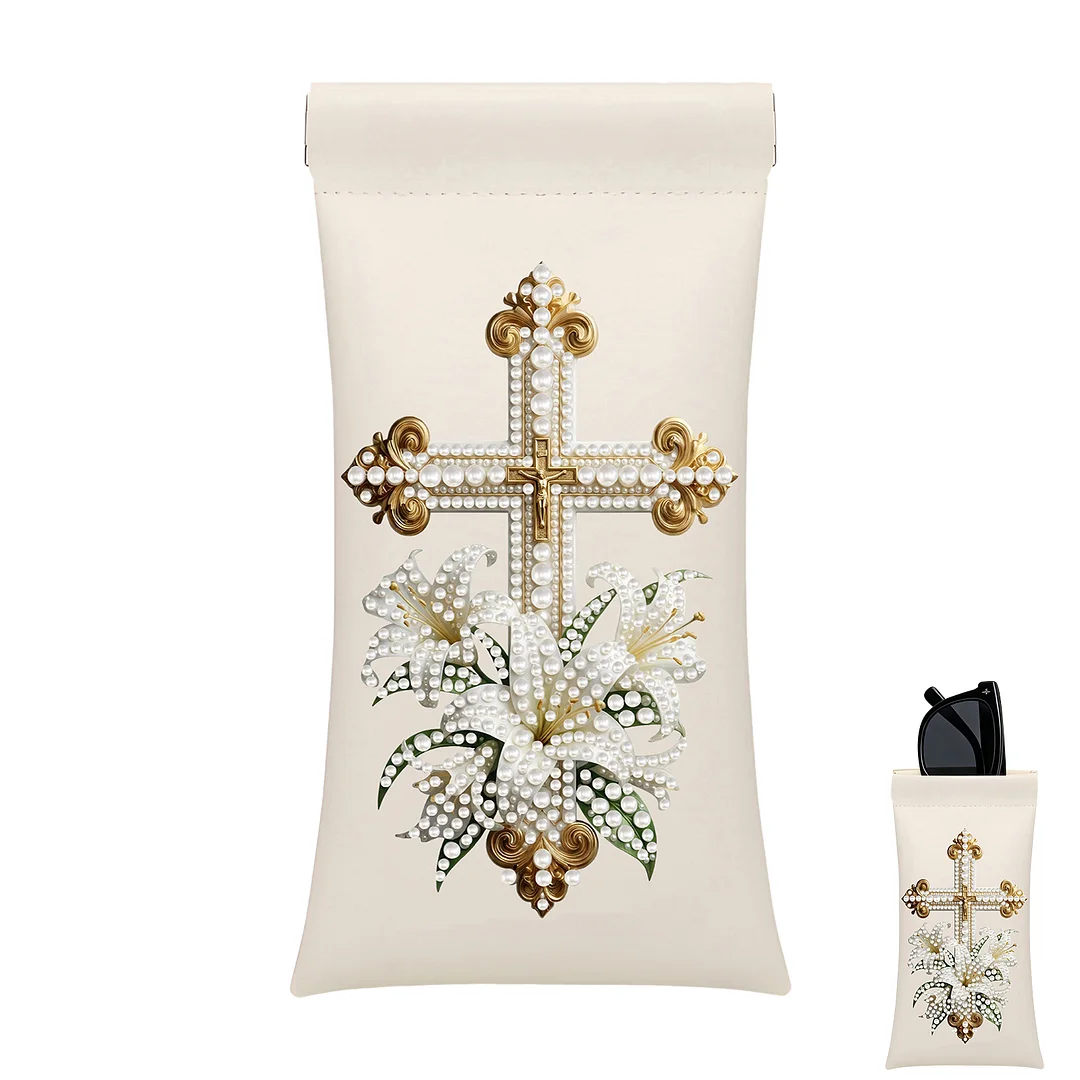Diamond Painting PU Cross and Lily Sunglass Case