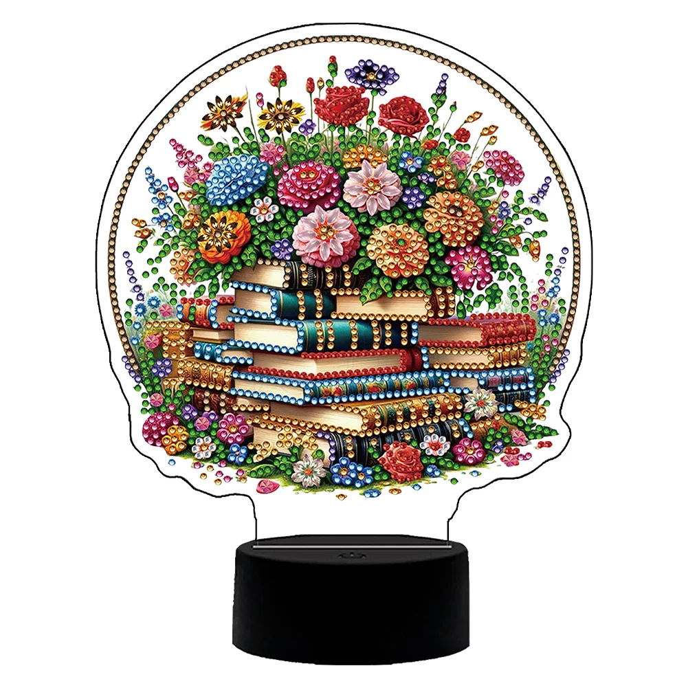 Flower DIY Diamond Painting Table Lamp with Tools 5D DIY Diamond Painting Lamp Double-sided for Bedroom Living Room Home Office
