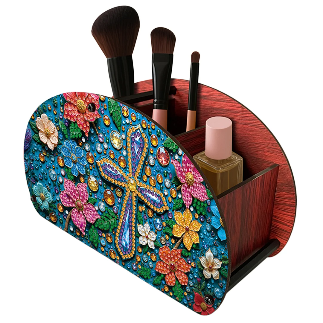 (US Warehouse)Diamond Painting Wooden Cross Design Makeup Brush Storage Box Organizer