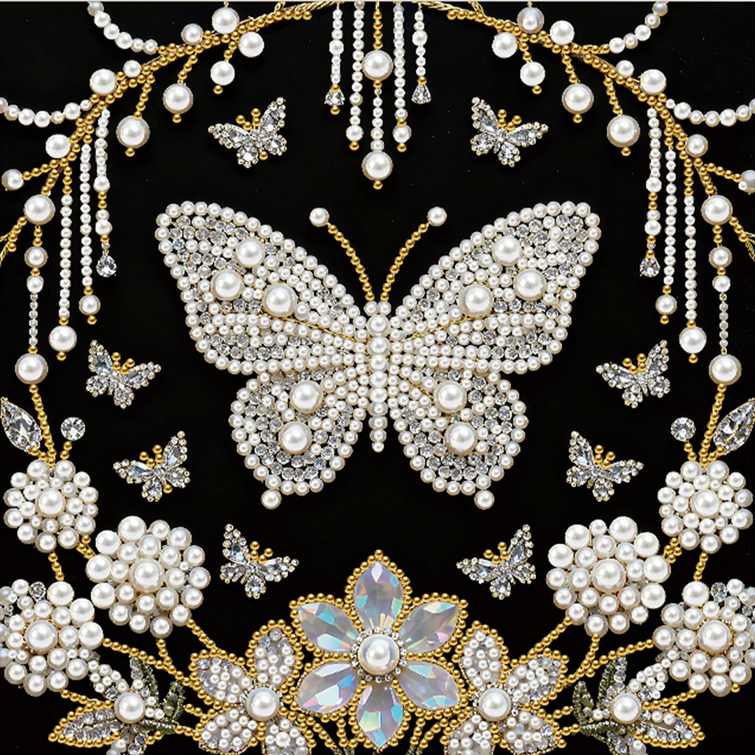 DIY Pearl Painting Butterfly Self-adhesive with Frame for Home Wall Decor(25x25cm)