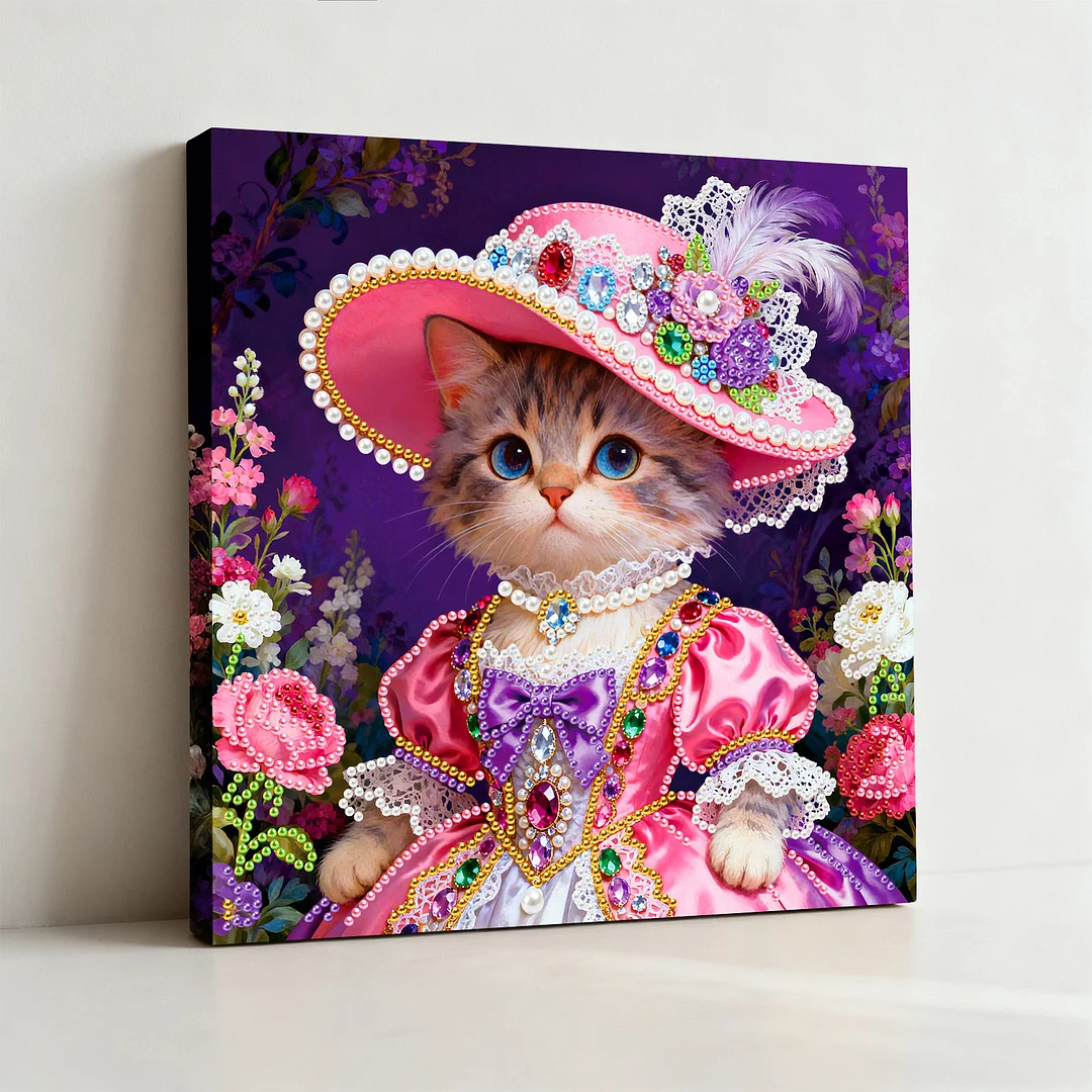 DIY Pearl Painting Cat Lady with Frame for Home Wall Decor(25x25cm)