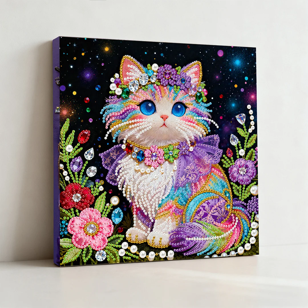 DIY Pearl Painting Cat with Frame for Home Wall Decor(25x25cm)