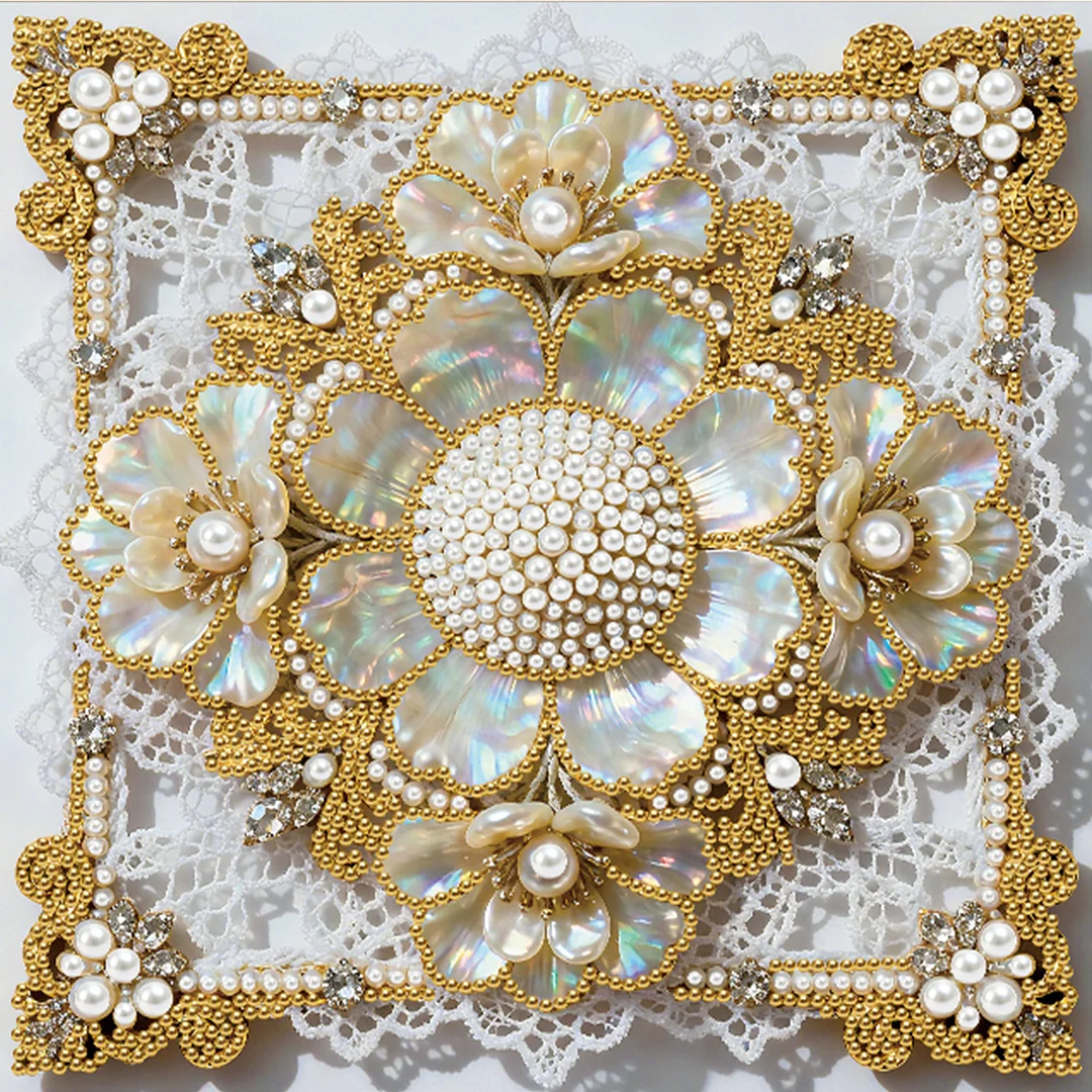 DIY Pearl Painting Flowers Self-adhesive with Frame for Home Wall Decor(25x25cm)