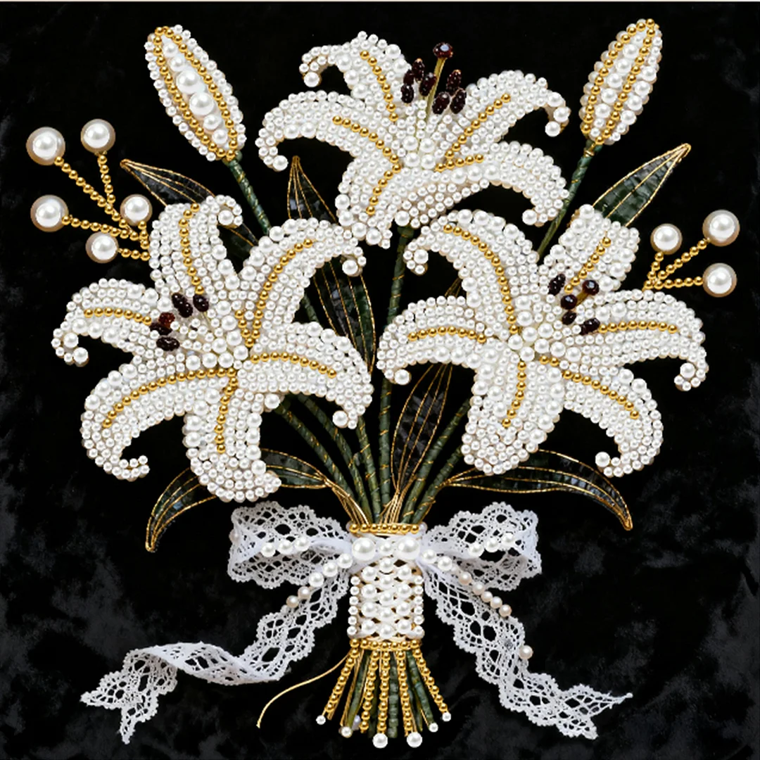 DIY Pearl Painting Lily Self-adhesive with Frame for Home Wall Decor(25x25cm)