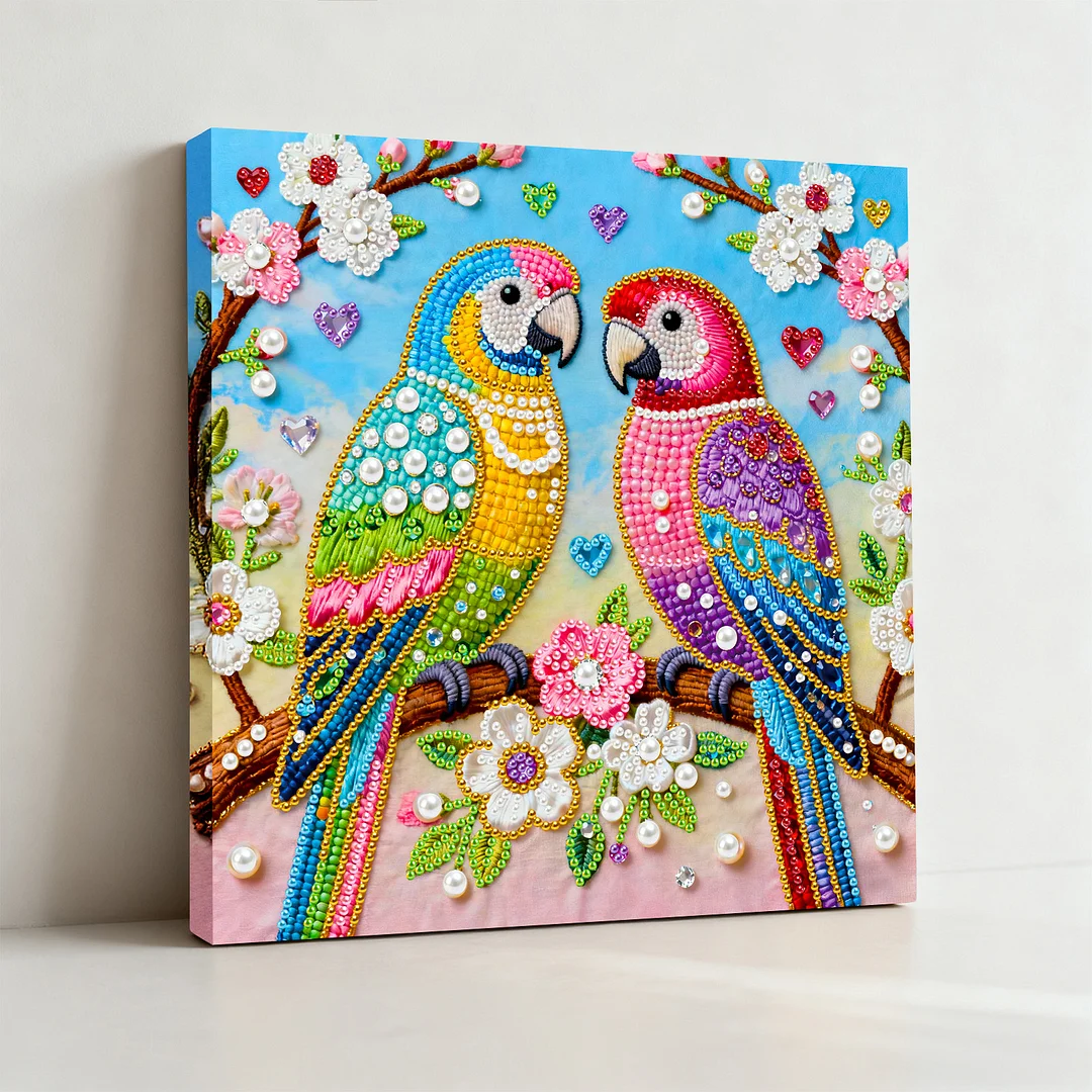DIY Pearl Painting Parrot with Frame for Home Wall Decor(25x25cm)