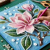 DIY Pearl Painting Pink Flowers with Frame for Home Wall Decor(25x25cm)