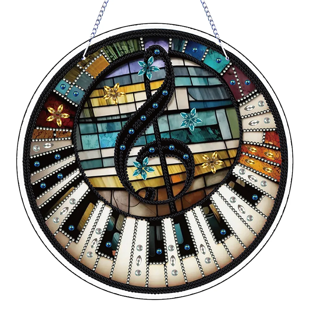 (US Warehouse)Diamond Painting Piano Notes Sun Catcher Hanging Diamond Art Pendant